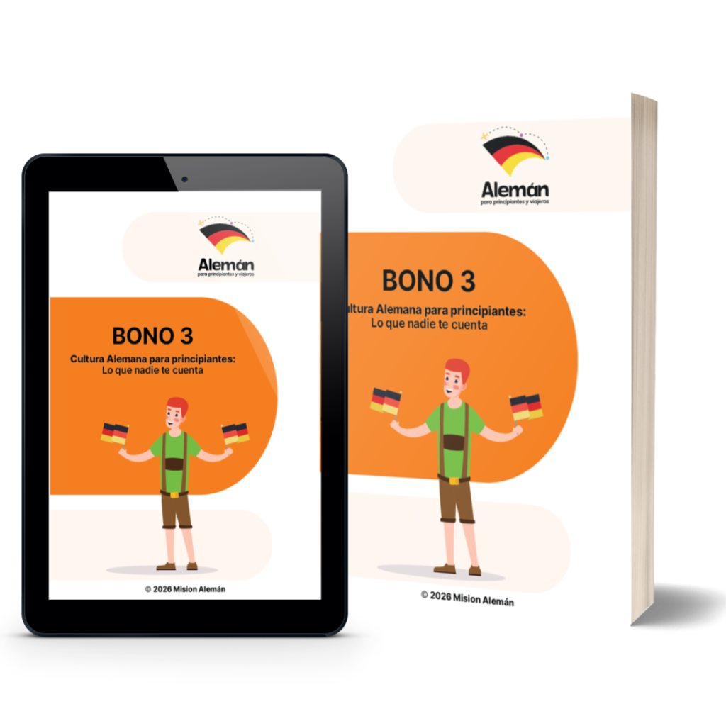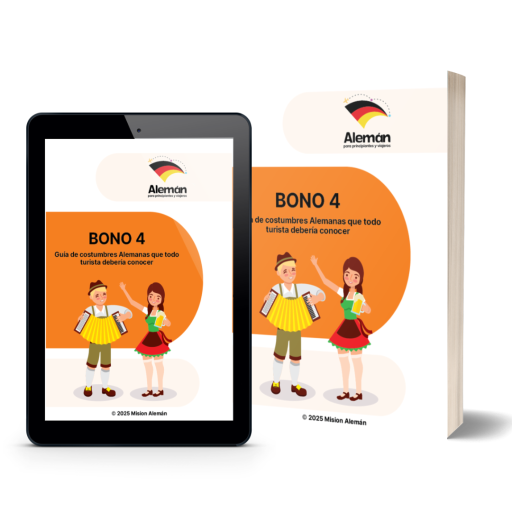 Este sitio web y el material distribuido, incluido el ebook y los bonus, contienen información educativa y cultural destinada a facilitar el aprendizaje del idioma alemán y a conocer mejor sus tradiciones. Sin embargo, los resultados de aprendizaje pueden variar de una persona a otra, ya que dependen de factores como la dedicación, la práctica constante, la experiencia previa con otros idiomas y el tiempo invertido en el estudio.